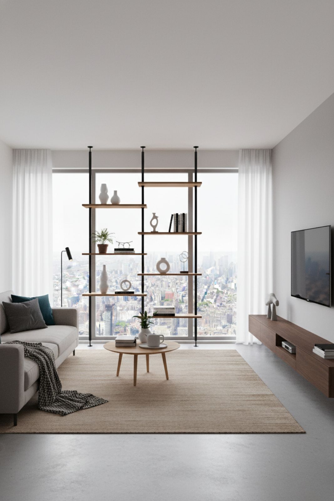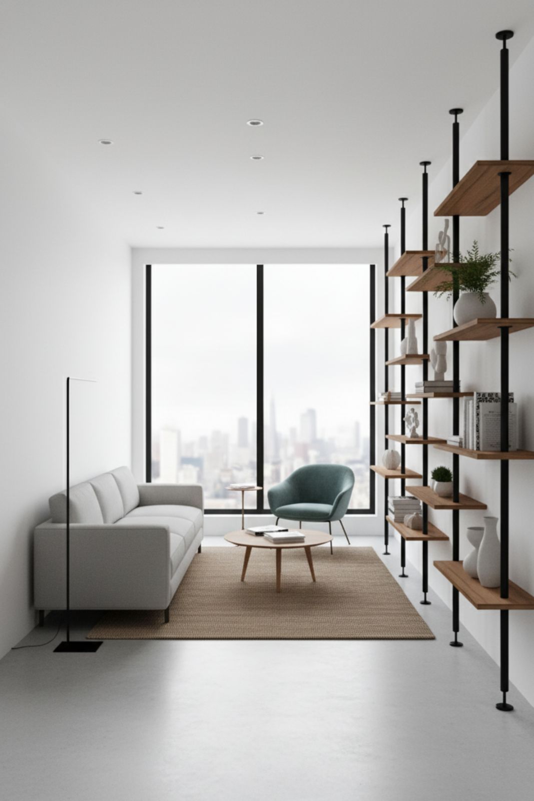 W D.A.G studio łączymy surowość metalu z ciepłem szlachetnego drewna. Naszą odpowiedzią na potrzeby wymagających klientów jest regał wolnostojący o konstrukcji rozporowej lub przyściennej, który łączy cechy stylu Japandi (harmonia, prostota) z elegancją Modern Classic.